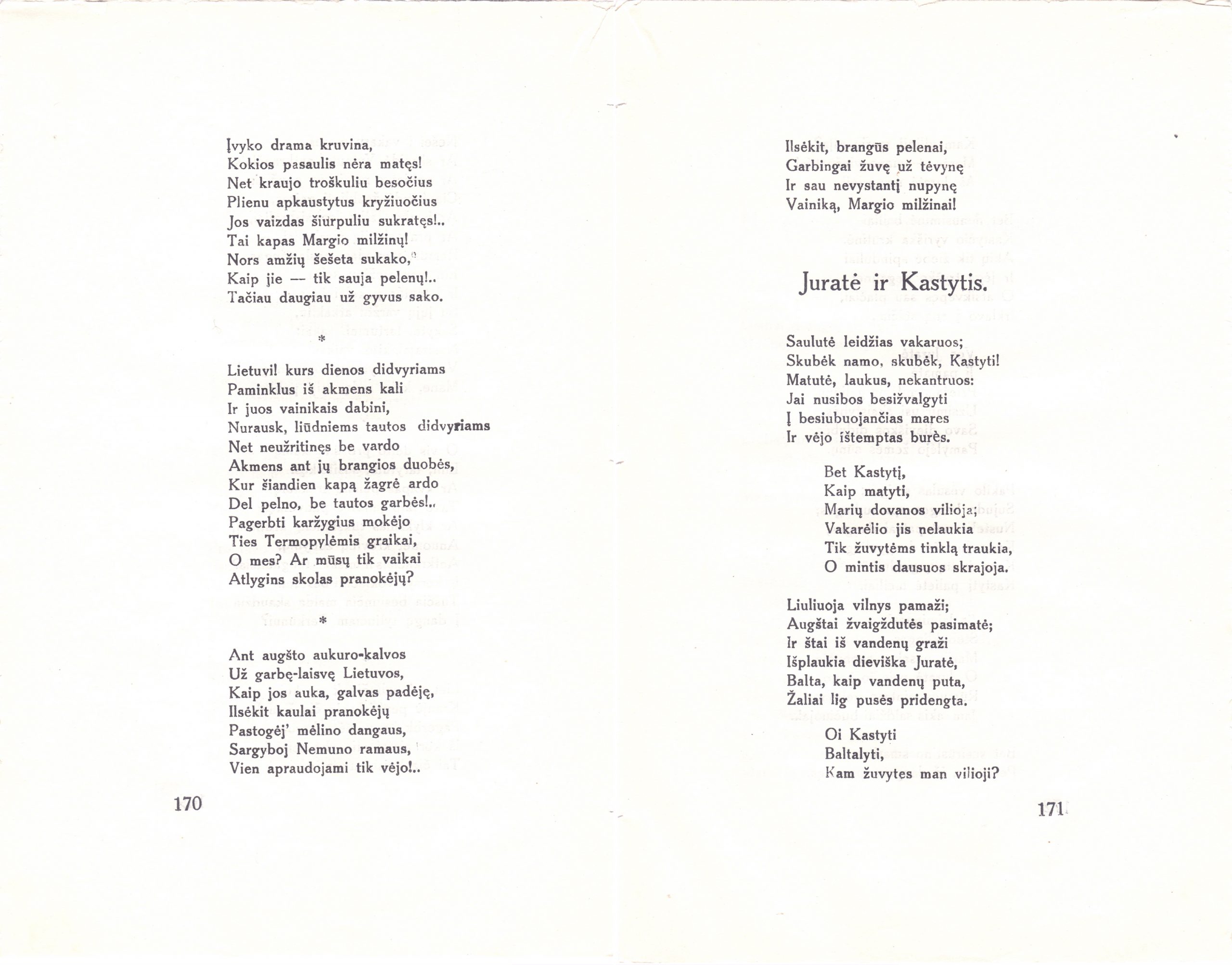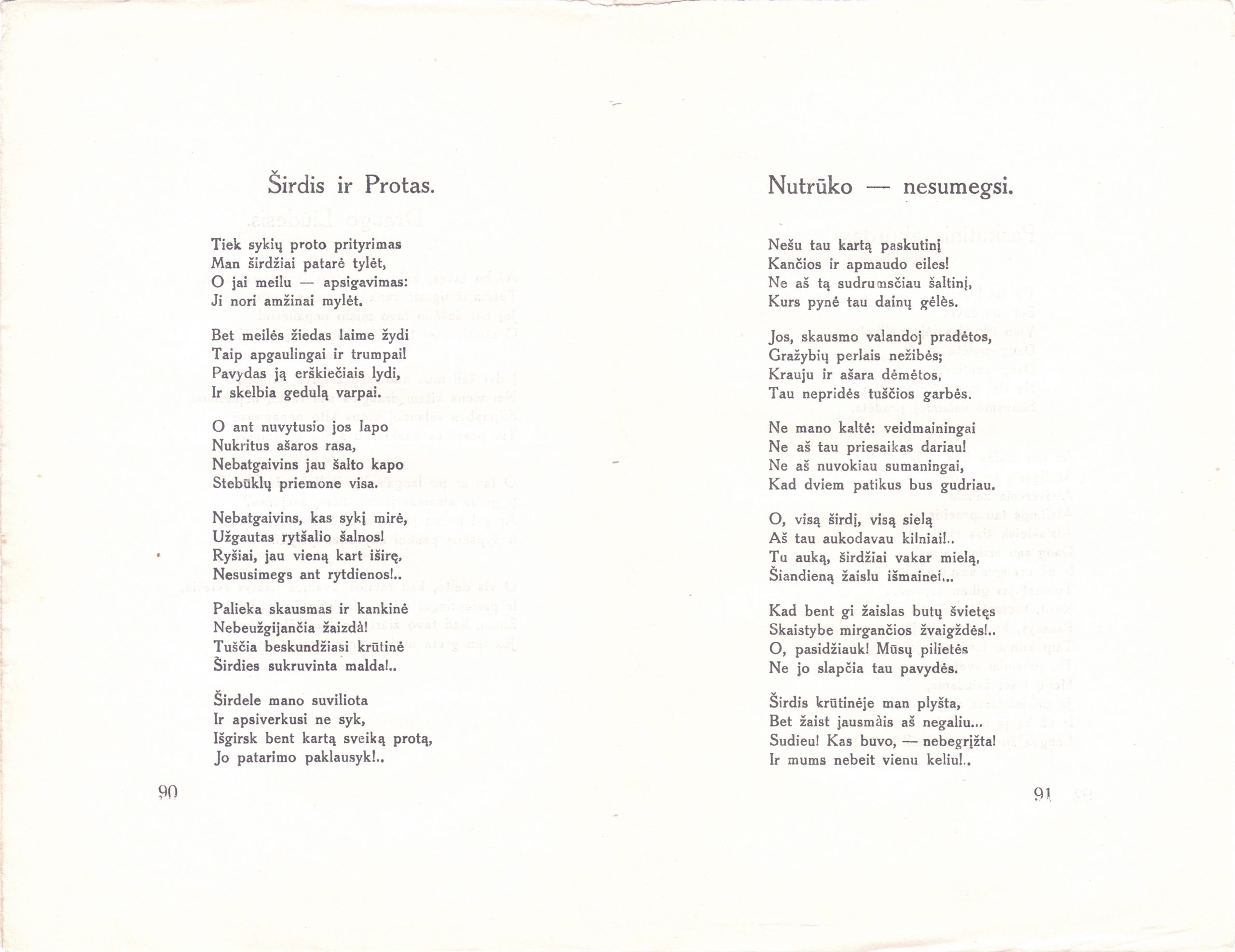 [Maironis], Maironio raštai, [t.] 1: Lyrika, šeštoji laida, [viršelio dailininkas Paulius Galaunė], Kaunas, 1927, 196 p., [„Raidės“ sp.], vinj., plonas viršelis, blokas 232×150 mm, [viršelyje leidimo data: MCMXXVI]